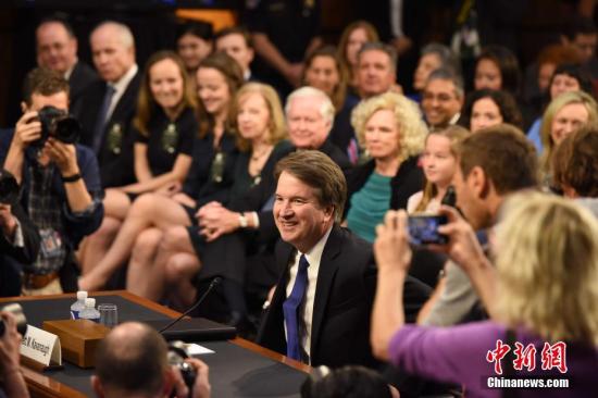 当地时间9月4日,被美国总统特朗普提名担任联邦最高法院大法官的布雷特·卡瓦诺出席参议院司法委员会对他的提名听证会。 中新社记者 邓敏 摄